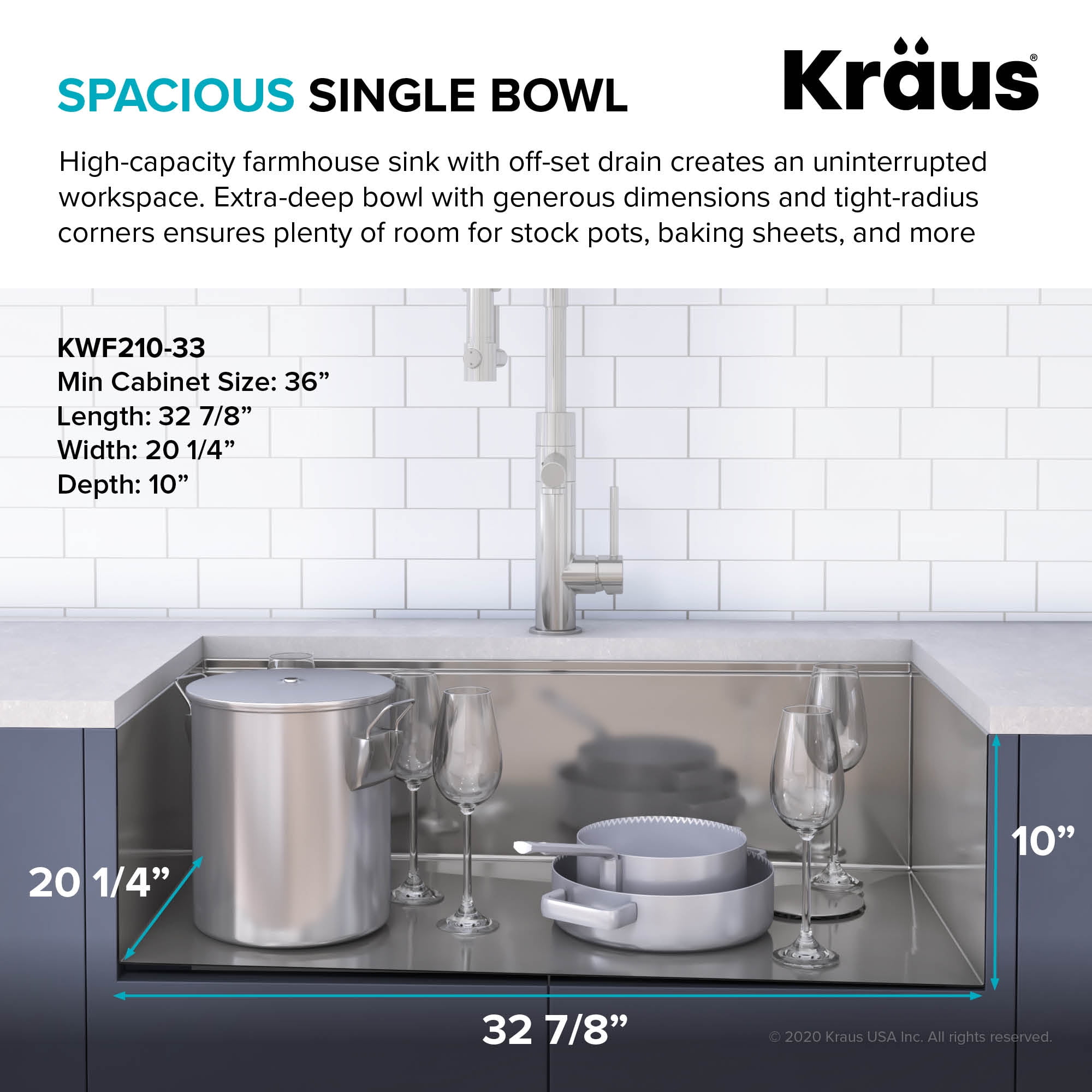 Farmhouse Apron Front Fireclay 33 in. Single Bowl Kitchen Sink in White. We just installed Quartz Countertops in our kitchen, and replaced a 2 bowl, standard, shallow stainless steel sink with our new KRAUS Single Bowl 32" Undermount Stainless Steel Sink. Kraus USA (@KrausUSA). Kraus is a leading manufacturer of kitchen New 5 star Review on KRAUS Standart PRO 33-inch 16 Gauge Drop-In Single Bowl 2-Hole on KRAUS Standart PRO 33-inch 16 Gauge 60/40 Double Bowl Stainless Steel Farmhouse Kitchen Sink: http... About Kraus When you shop Kraus, you'll find a unique selection of designer pieces, including