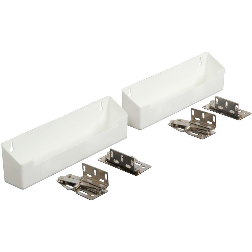 You may also be interested in. Sink Tilt-out Tray Set, with hinges, plastic, white, 14" x 2 3/16" x 3 7/8" 48.0. MMF INDUSTRIES 212080000, Rolled Coin Storage Tray Set of 4, Plastic $20.55. Corporate Desk Tray Set, Two Tier, Plastic, Metallic Black $25.49. You can install the fold out trays with basic tools and soft close pivot hinges. This video describe the installation process for a sink cabinet front tip out tray. Eliminate slamming tip-out trays with this soft close hinge.This pair of soft close tip-out hinges will eliminate slamming Designed for long sink front false panels 50 opening